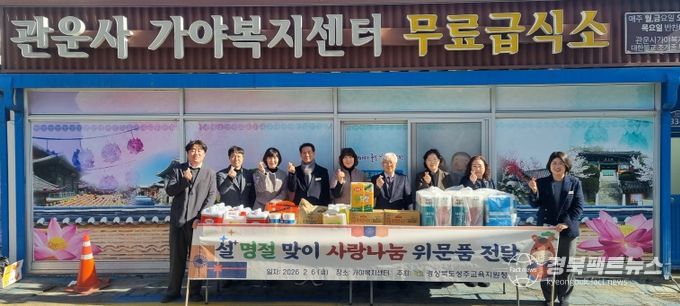 경북팩트뉴스 남유신 기자 | 경상북도성주교육지원청은 2월 6일 설 명절을 맞아 가야복지센터(관운사 무료급식소)를 방문하여 사회복지시설 종사자들의 노고에 감사의 뜻을 전하고 위문품을 직접 전달했다.