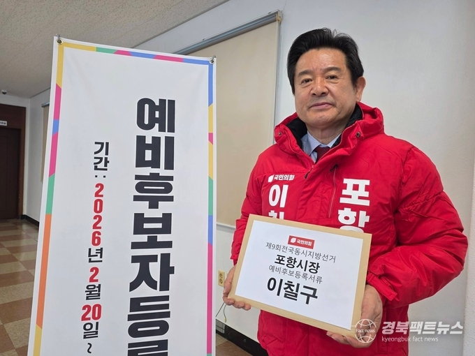 경북팩트뉴스 남유신 기자 | 이칠구 전 경북도의원(국민의힘)이 지난 20일 포항시선거관리위원회를 찾아 6·3 지방선거 포항시장 선거 예비후보 등록을 마치고 본격적인 선거전에 돌입했다.