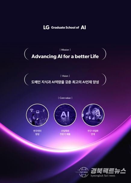 경북팩트뉴스 남유신 기자 | ㈜엘지(LG)경영개발원 에이아이(AI)연구원이 설치한 사내대학원인 ‘엘지(LG) 에이아이(AI) 대학원’이 3월 4일에 개원식을 열고, 본격적으로 석박사 학위과정 운영을 시작한다.