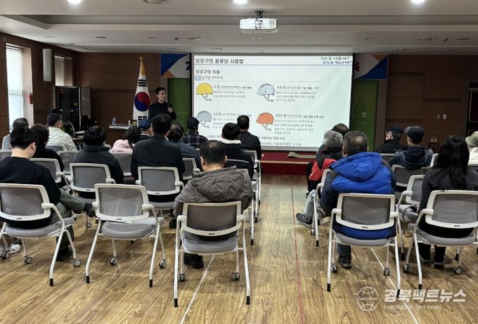 경북팩트뉴스 남유신 기자 | 청도군은 지난 4일 여성회관 종합교육장에서 공공근로사업 및 지역공동체일자리사업 참여 근로자와 사업 담당 공무원 등 40여 명을 대상으로 ‘산업안전보건 교육’을 실시했다.