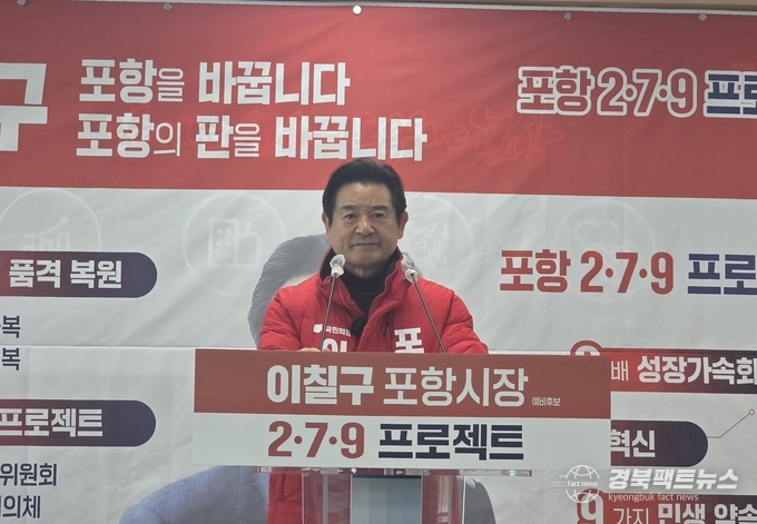 경북팩트뉴스 남유신 기자 | ‘포항 정치 품격 회복’을 통한 위기 극복을 슬로건으로 내건 이칠구 포항시장 예비후보가 ‘포항 2·7·9 프로젝트’ 공약을 발표했다.