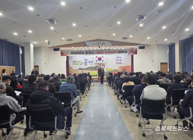경북팩트뉴스 남유신 기자 | 문경시농업기술센터는 지난 3월 5일 농업기술센터 대강당에서 2026년도 문경시 고품질 사과대학 입학식을 개최하고, 본격적인 교육과정 운영에 들어갔다.