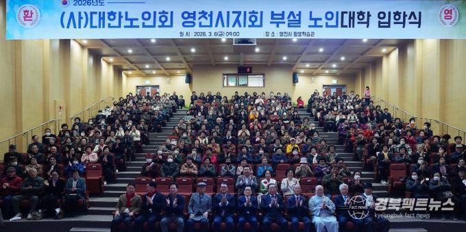 경북팩트뉴스 남유신 기자 | 영천시는 대한노인회 영천시지회 부설 노인대학이 6일 평생학습관 우석홀에서 노인대학생, 기관단체장 등 350여 명이 참석한 가운데 ‘제31기 입학식’을 개최했다고 밝혔다.