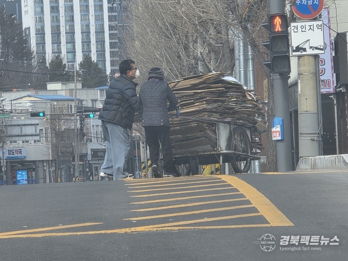 경북팩트뉴스 남유신 기자 | 포항 롯데백화점 사거리에서 영일대해수욕장 방면 횡단보도를 건너던 한 시민이 폐지를 가득 실은 리어카를 끌던 노인을 도와주는 훈훈한 장면이 포착됐다.
