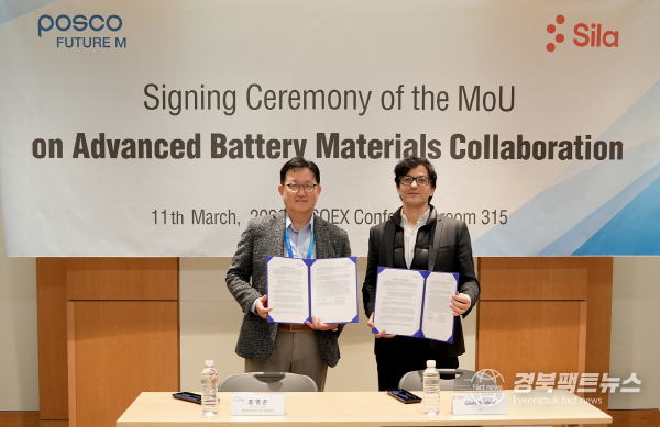 경북팩트뉴스 남유신 기자 | 포스코퓨처엠이 자체 양·음극재 기술과 미국 실라社의 실리콘 음극재 기술을 결합해 첨단 배터리소재 기술 개발에 나선다.