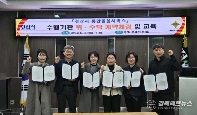 경북팩트뉴스 남유신 기자 | 경산시는 13일 지역 내 돌봄이 필요한 어르신들이 살던 곳에서 안정적으로 생활할 수 있도록 지원하기 위해 통합 돌봄 서비스 수행기관(5개 분야 6개소)과 위·수탁 계약을 체결하고 사업 운영 교육을 실시했다고 밝혔다.