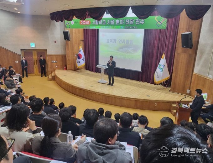 경북팩트뉴스 남유신 기자 | 경북교육청은 13일 경산시에 있는 경산교육지원청 본관 1층 강당에서 도내 사립 초․중․고․특수학교 행정실장 170여 명을 대상으로 ‘2026년 사립학교 시설 분야 전달 연수’를 개최했다고 밝혔다.