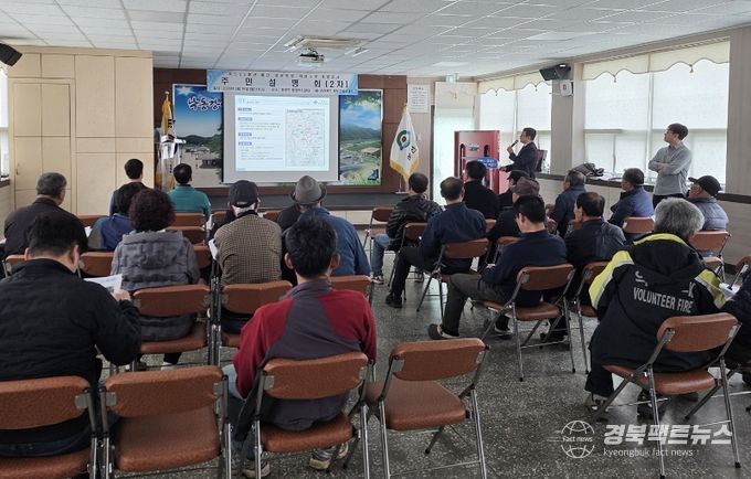 경북팩트뉴스 남유신 기자 | 예천군은 16일 경상북도 북부건설사업소 주관으로 풍양면 행정복지센터에서 풍양면 청운1리~청운3리 일대의 “국도 제59호선 예천 청운지구 위험도로 개량공사” 실시설계에 대한 주민설명회를 개최했다고 밝혔다.
