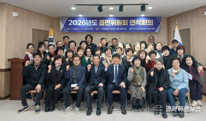 경북팩트뉴스 남유신 기자 | 의성군은 한국자유총연맹 의성군지회가 지난 13일 의성군종합지원센터 3층 대회의실에서 임원과 읍·면위원장 등 40여 명이 참석한 가운데 '2026년 읍·면위원회 연석회의'를 개최했다고 밝혔다.
