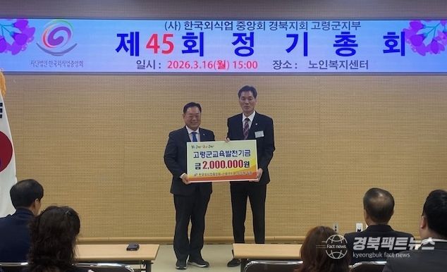 이날 사)한국외식업중앙회 경북지회 고령군지부 시진권 지부장은 “우리 지역 아이들을 위해 힘을 보탤 수 있게 되어 감사하게 생각한다.”며 “고령의 밝은 미래를 위해 학생들의 학업 환경 개선과 지역인재 육성을 위해 힘써 달라.”고 말했다.