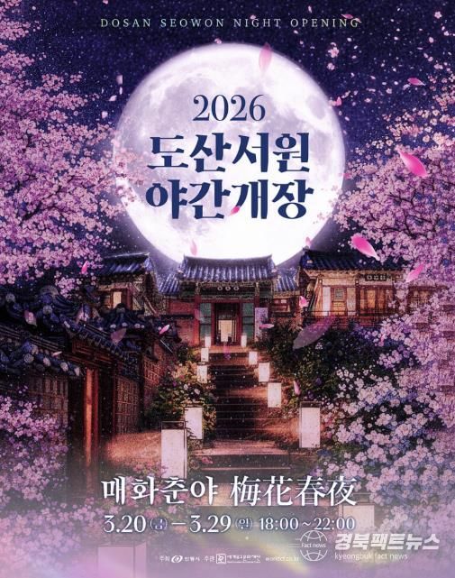 안동시는 오는 3월 20일부터 29일까지 10일간 도산서원 일원에서 ‘도산서원 야간개장’을 개최한다. 이번 행사는 매일 저녁 6시부터 밤 10시까지 운영되며, 입장료는 무료다.