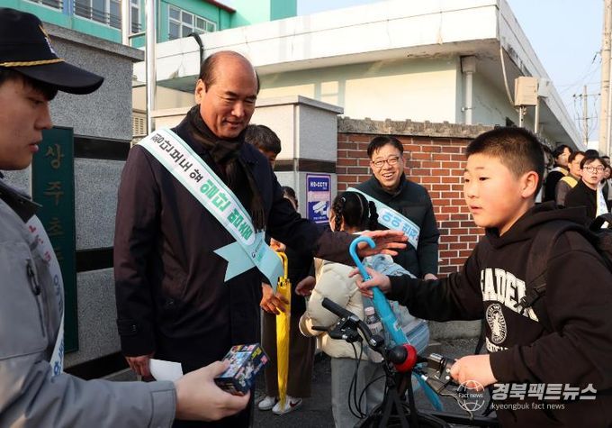 경북팩트뉴스 남유신 기자 | 상주시는 3월 17일 오전 8시 상주초등학교 후문에서 아이먼저 안전한 등굣길 조성 및 교통안전 인식 강화를 위한 교통안전 캠페인을 실시했다.
