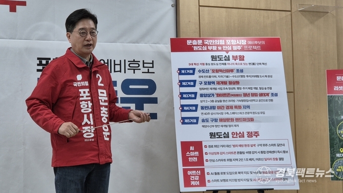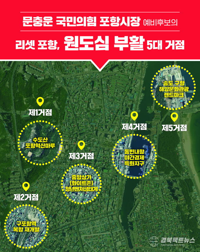 경북팩트뉴스 남유신 기자 | 문충운 국민의힘 포항시장 예비후보는 18일 원도심 5대 거점을 중심으로 한 구조 재편과 정주 여건 개선을 골자로 한 ‘원도심 부활 및 안심 정주’ 공약을 발표했다.
