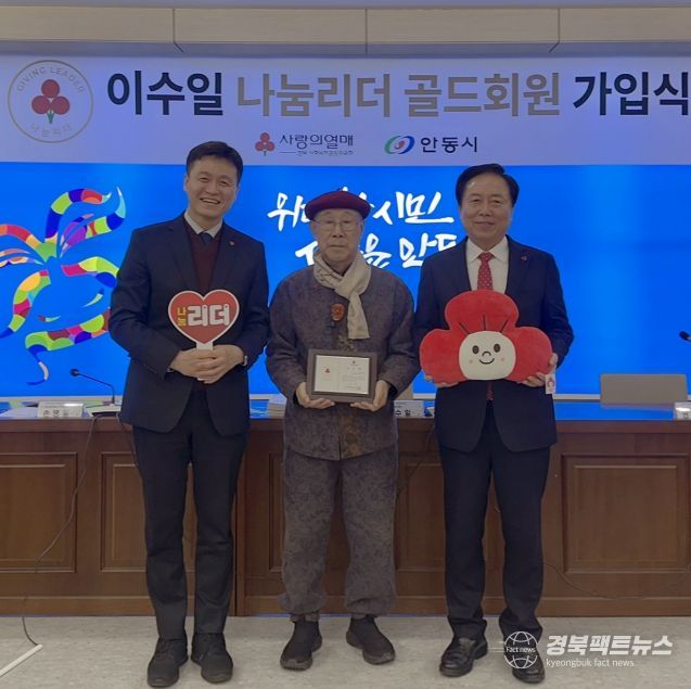 경북팩트뉴스 남유신 기자 | 안동시는 18일 웅부관 소통실에서 전 안동로타리클럽 이수일 회장에게 경북사랑의열매 나눔리더(골드) 가입 인증패를 전달했다.