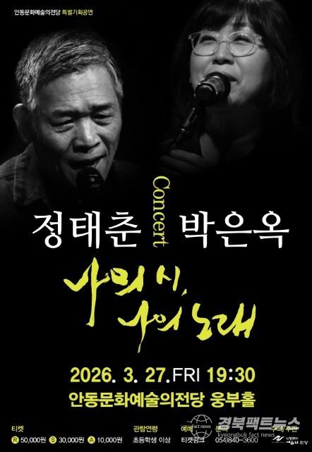 경북팩트뉴스 남유신 기자 | 안동문화예술의전당은 다양한 장르의 공연을 통해 시민의 문화 향유의 폭을 넓히고자 정태춘․박은옥 콘서트 ‘나의 시, 나의 노래’를 개최한다.
