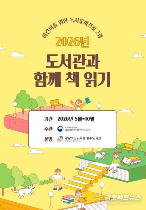 경북팩트뉴스 남유신 기자 | 경상북도교육청 성주도서관은 국립어린이청소년도서관이 주최하는 2026년'도서관과 함께 책 읽기'공모사업에 선정되어, 오는 5월부터 10월까지 성주지역아동센터 어린이를 대상으로 독서프로그램을 운영할 예정이다.