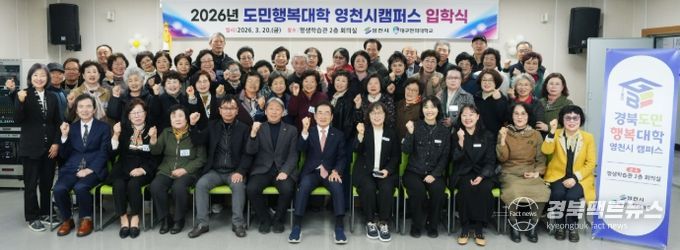 경북팩트뉴스 남유신 기자 | 영천시는 20일 평생학습관 회의실에서 신입생과 관계자 등 60여 명이 참석한 가운데 ‘2026년 경북도민행복대학 영천캠퍼스’ 입학식을 개최하고, 새로운 배움의 장을 열었다고 밝혔다.
