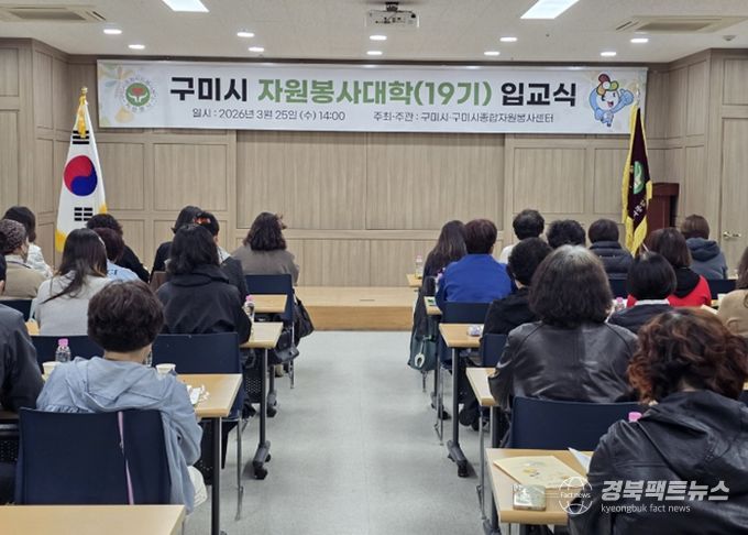 경북팩트뉴스 조현묵 기자 | 구미시는 지난 25일 구미시 새마을회 강당에서 구미시종합자원봉사센터(센터장 하준호) 주관으로 '제19기 구미시 자원봉사대학 입교식'을 개최했다.