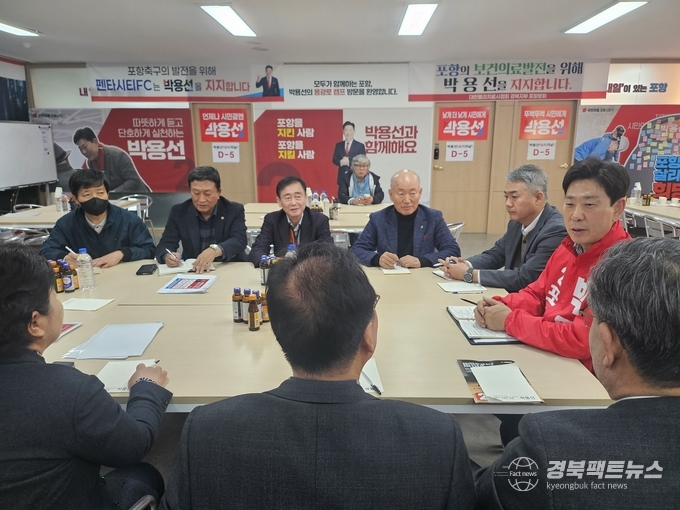 경북팩트뉴스 남유신 기자 | 박용선 포항시장 예비후보는 26일 포항 경제 활성화를 위한 정책간담회를 열고 침체된 지역경제 회복을 위한 ‘포항 경기 부양 단기 실행 5대 공약’을 발표했다. 박 예비후보는 “지금 포항 경제는 시민들이 체감할 정도로 매우 어려운 상황”이라며 “단기에 실행 가능한 정책부터 추진해 지역경제에 다시 활력을 불어넣겠다”고 밝혔다.