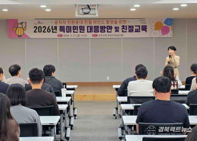 한편 성주군은 이번 교육을 시작으로 군민과 공무원 모두가 만족할 수 있는 민원환경 조성에 힘쓰고, 민원서비스 개선과 대응체계 정비를 지속적으로 추진해 나갈 방침이다.