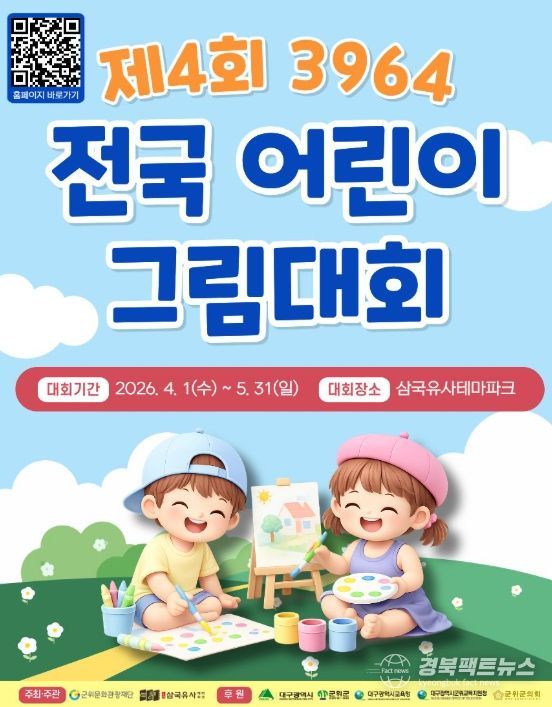 경북팩트뉴스 남유신 기자 | 군위문화관광재단이 주최하는‘제4회 3964 전국 어린이 그림대회’가 올해부터 개최 시기와 운영 방식을 전면 개편하여 새롭게 찾아온다.