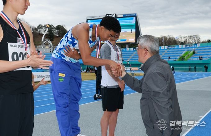 경북팩트뉴스 남유신 기자 | 육상의 메카 예천군이 예천 스타디움에서 열리고 있는 제64회 경북도민 체육대회 육상 종목 첫날부터 금메달 등 다수의 메달을 획득하며 전년도에 이어 2년 연속 육상 우승을 위한 쾌조의 스타트를 끊었다.