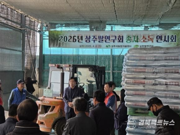 경북팩트뉴스 남유신 기자 | 상주시농업기술센터는 4월 2일 상주쌀연구회와 농업인 40여 명이 참여한 가운데 성동뜰 소재 육묘장에서 벼 종자소독 연시회를 실시했다.