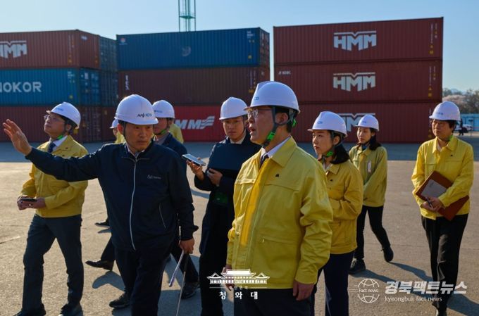 경북팩트뉴스 황혜경 기자 | 이재명 대통령은 8일 오후, 의왕 소재 내륙컨테이너기지(ICD)를 방문하여 고유가 상황으로 어려움을 겪고 있는 화물운송 및 물류업계 종사자들과 간담회를 가졌다.
