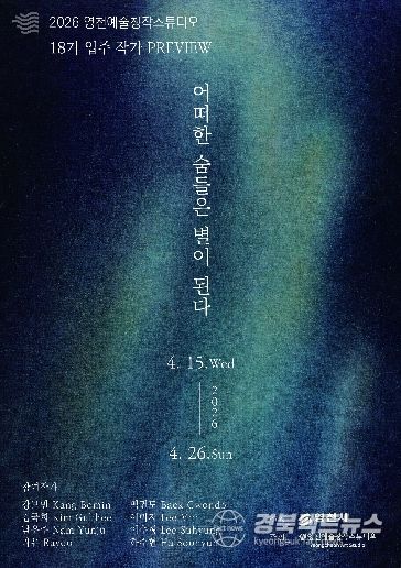 이번 전시는 올해 1월 입주한 18기 작가 8명이 ‘별의 도시’ 영천에서 각자의 호흡과 감각, 사유를 바탕으로 새로운 출발을 함께한다는 의미를 담아 기획됐으며, 총 40여 점의 작품을 선보일 예정이다.