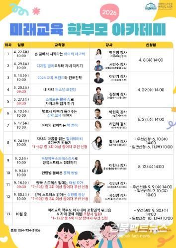 경북팩트뉴스 남유신 기자 | 경상북도교육청 영덕도서관은 학부모 및 예비 학부모, 일반인을 대상으로 '2026년 미래교육 학부모 아카데미' 강좌를 이달 22일부터 운영한다고 밝혔다.