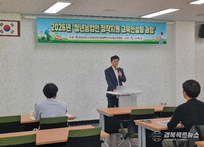 경북팩트뉴스 조현묵 기자 | 구미시는 지난 15일 청년농업인 20여 명이 참석한 가운데 ‘청년농업인 정착지원 교육컨설팅 과정’을 개강하고, 미래 농업을 이끌 핵심 인력 육성에 본격적으로 나섰다.