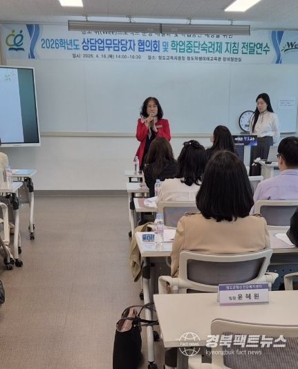 경북팩트뉴스 남유신 기자 | 경상북도청도교육지원청은 4월 16일 14시부터 청도교육지원청 청도학생미래교육관 창의창안실에서 관내 초‧중‧고등학교 전문상담(교)사, 상담업무담당교사 및 학업중단숙려제 담당교사를 대상으로 전달연수 및 협의회를 실시했다.
