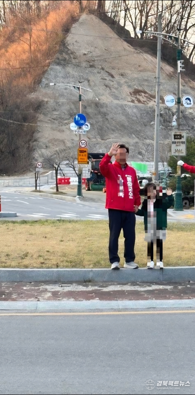 경북팩트뉴스 남유신 기자 | 봉화군에서 군수 예비후보 측이 어린 아동을 선거운동에 동원했다는 의혹이 제기되며 공직선거법 위반 논란이 확산되고 있다. 특히 해당 아동이 예비후보의 손녀로 추정된다는 이야기가 퍼지면서 지역사회 파장이 커지고 있다.