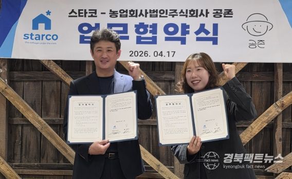 경북팩트뉴스 남유신 기자 | 영천시는 지난 17일, 완산뜨락 마을관리사회적협동조합(이사장 채광길)에서 운영하고 있는 카페 스타코와 농업회사법인 공존(대표 이소운)이 상생을 위한 업무협약을 체결했다고 밝혔다.