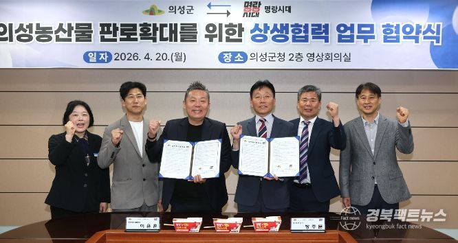 경북팩트뉴스 남유신 기자 | 의성군은 4월 20일 군청 영상회의실에서 명랑시대외식청년창업협동조합과 의성 농특산물 판로 확대를 위한 상생협력 업무협약(MOU)을 체결하며 협력 관계를 이어간다고 밝혔다.