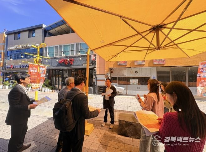 경북팩트뉴스 남유신 기자 | 문경시는 점촌원도심상권 점촌역 방향 200여 미터 구간에 ‘닻별 거리’ 조성 속도를 높이고 있다. 노란색 간판과 어닝을 새로 설치하고, 상징 조형물과 조형 벤치 등을 배치하며, 은하수 파고라 70미터 조명으로 거리를 화려하게 꾸민다.