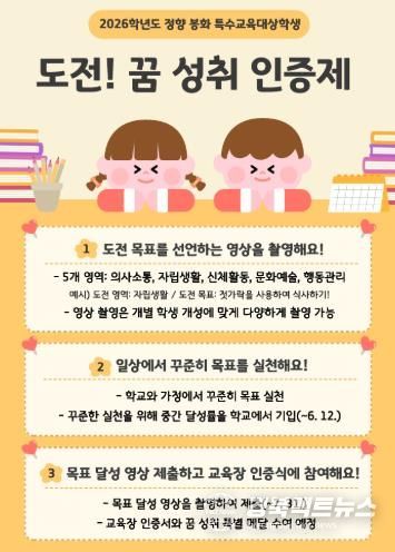 경북팩트뉴스 남유신 기자 | 봉화교육지원청은 4월 20일 '장애인의 날'을 기념하여, 경상북도 내 최초로 특수교육대상학생의 특성을 반영해 전면 개편한 2026학년도 정향 봉화 특수교육대상학생 '도전! 꿈 성취 인증제' 참가 신청을 받고 본격적인 운영에 돌입한다고 밝혔다.