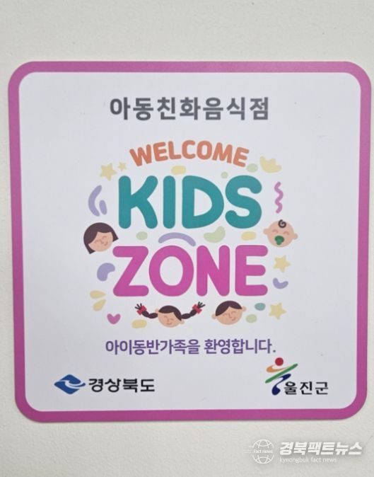 경북팩트뉴스 남유신 기자 | 울진군은 건전한 양육문화와 가족 친화적인 외식환경을 확산하기 위해 일반·휴게음식점 6개소를 대상으로‘웰컴키즈존’희망 업소를 5월 8일까지 모집한다.