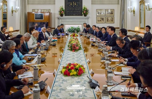 경북팩트뉴스 황혜경 기자 | 청와대는 이재명 대통령의 인도 국빈 방문 성과와 관련 "우리 글로벌 사우스 외교의 본격적인 가동을 알리는 계기이자 14억 인구를 바탕으로 고속 성장 중인 인도와 새로운 협력 모멘텀을 창출하고 미래지향적이고 전략적인 분야로 양국 간 협력의 지평을 확대하는 계기가 됐다"고 평가했다.