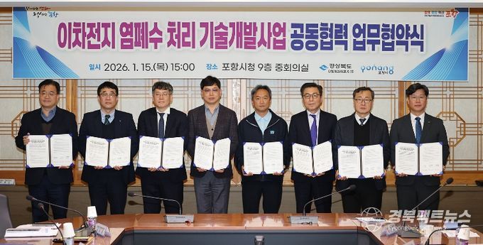 경북도는 기후에너지환경부가 주관하는 2026년도 ‘이차전지 염폐수 처리 기술개발사업’ 신규 과제 공모에서, 지난 1월 기술개발 지원을 위해 경북도․포항시가 업무협약을 맺은 기업 중 ㈜BIT범우 등 5개 주관기업들이 참여한 5개 과제 모두 최종 선정됐다.