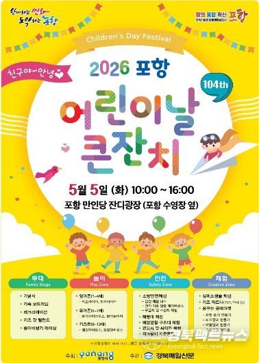 경북팩트뉴스 남유신 기자 | 포항시는 제104회 어린이날을 맞아 내달 5일 남구 만인당 잔디광장에서 ‘2026 포항 어린이날 큰 잔치’를 개최한다.