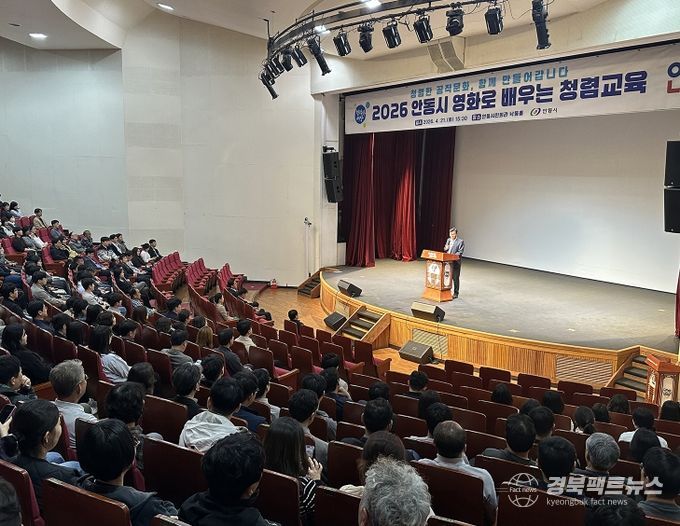 경북팩트뉴스 남유신 기자 | 안동시는 4월 21일 안동시민회관 낙동홀에서 시 소속 공무원 및 공직유관단체 직원 380여 명이 참석한 가운데 ‘2026년 영화로 배우는 청렴교육’을 실시했다.
