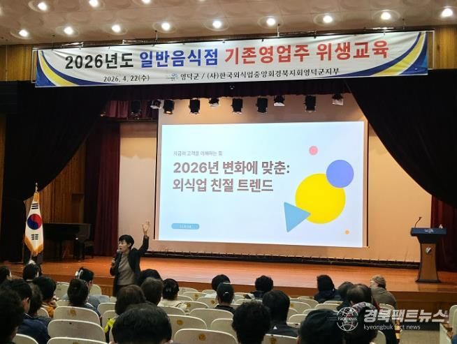 경북팩트뉴스 남유신 기자 | 영덕군은 관내 외식 산업 영업자들의 위생 관리 역량을 높이고 고품격 외식 환경을 조성하기 위해 22일 영덕군민회관에서 일반음식점 기존영업자 300여 명을 대상으로 ‘2026년 일반음식점 위생교육’을 시행했다.