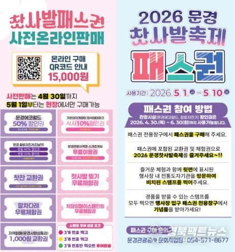 축제추진위원회 관계자는 “올해 패스권은 관광객들이 문경의 따뜻한 정과 도자기 문화를 부담 없이 만끽할 수 있도록 세심하게 준비했다”며 “가정의 달 5월, 문경새재의 신록 속에서 가족, 연인과 함께 특별한 추억을 만드시길 바란다”고 전했다.