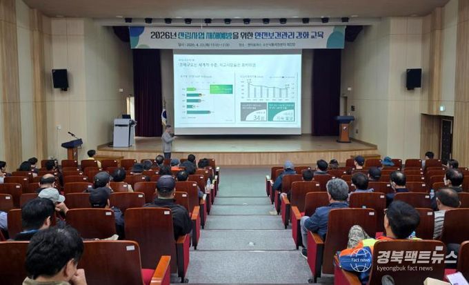경북팩트뉴스 남유신 기자 | 영덕군은 산림 현장의 안전사고를 예방하고 근로자의 보건 안전을 강화하기 위해 지난 23일 영덕 로하스 수산식품지원센터에서 ‘산림사업 재해예방 안전보건 관리 강화교육’을 시행했다.