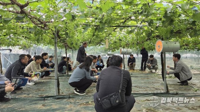 경북팩트뉴스 남유신 기자 | 김천시는 4월 23일부터 24일까지 1박2일 간 김천시농업기술센터 및 관내 포도 재배농가 일원에서 농촌진흥청이 육성하는 ‘포도전문지도연구회 과제 교육’을 추진했다.