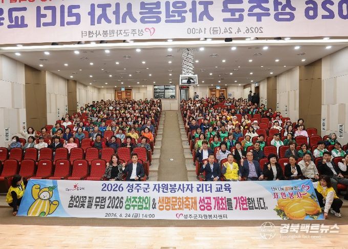 경북팩트뉴스 남유신 기자 | 경북 성주군자원봉사센터는 지역 공동체의 따뜻한 변화를 이끄는 자원봉사 리더들을 한자리에 모아 의미 있는 교육의 장을 마련했다. 4월 24일 성주군청 대강당에서 열린 '2026 성주군 자원봉사자 리더 교육'은 단순한 역량 강화 교육을 넘어 나눔과 연대의 가치를 되새기고, 다가오는 지역 대표 축제를 함께 준비하는 결속의 자리로 깊은 울림을 전했다.