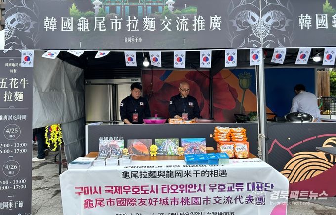 경북팩트뉴스 조현묵 기자 | 구미시가 대만 타오위안시 대표 미식축제에 참여해 K-라면을 앞세운 도시 브랜드를 알리고, 양 도시 간 교류 협력의 폭을 넓혔다.