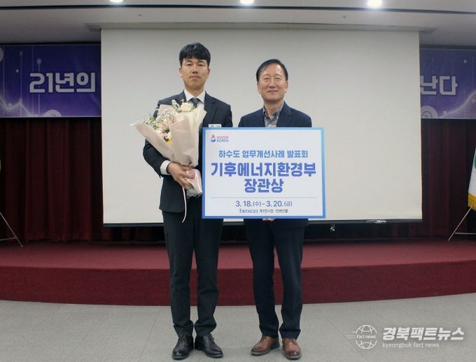 경북팩트뉴스 남유신 기자 | 안동시시설관리공단은 한국상하수도협회가 주최하고 기후에너지환경부가 후원한 '2026 WATER KOREA 하수도 업무 개선 발표회'에서 최고 영예인 기후에너지환경부 장관상을 수상했다고 4월 27일 밝혔다.