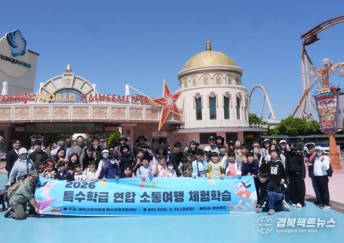 경북팩트뉴스 남유신 기자 | 예천교육지원청 특수교육지원센터는 4월 24일 관내 유·초·중·고 특수학급 학생 32명과 특수교사 및 인솔교사 26명 등 총 58명이 참여한 가운데 경주월드에서 특수학급 연합 현장체험학습을 실시했다.